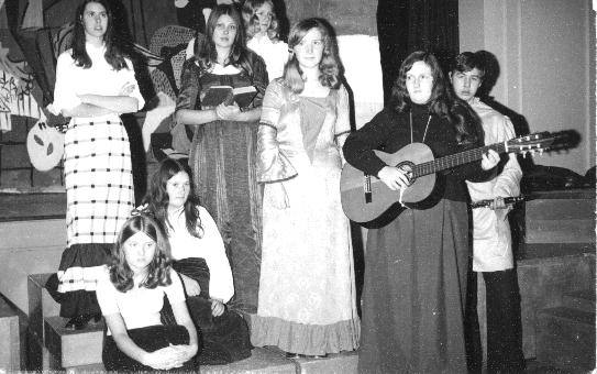 Amanda, John and Stewart Debora Horler as the Angel Deborah, Stewart and Paul Clive, David and Tony Music Group Oh Dear (said John) Some great backs of headsLe Bourgeoise Gentilhomme in November 1974