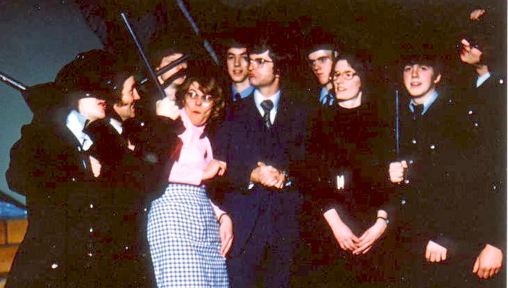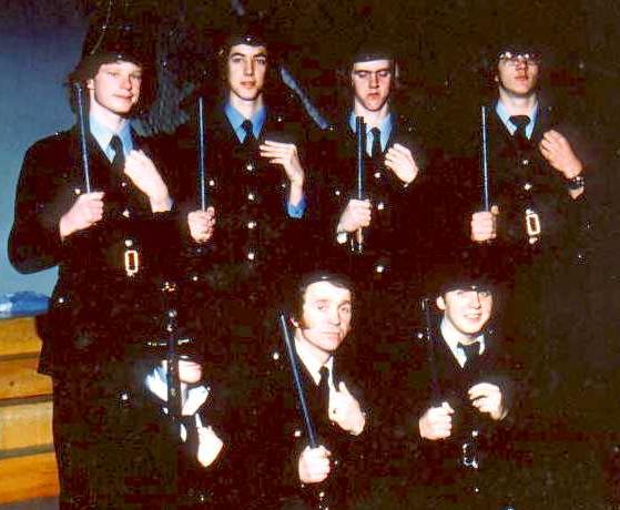 Grubb(???), Ian Fletcher, (???) front row L-R Gary O'Neill, Mike (mister PE) Summers, Terry Pierce(???)The same Policemen quite rightly apprehending Miss Juliet Skedge,
